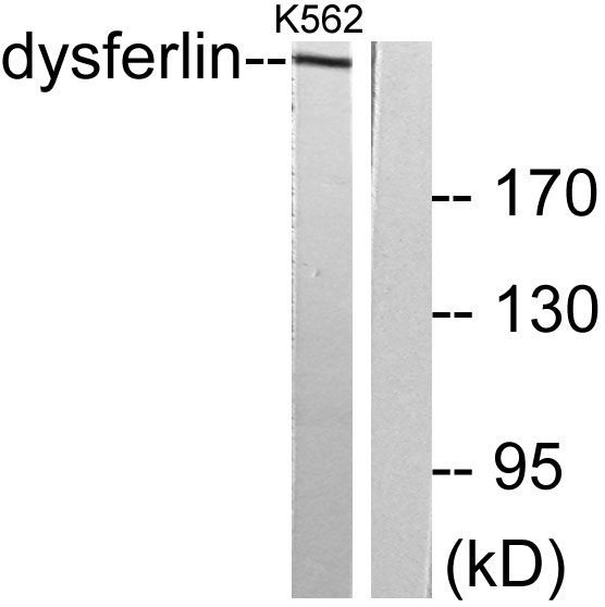 developmental stage:Expression in limb tissue from 5-6 weeks embryos; persists throughout development.,disease:Defects in DYSF are the cause of distal myopathy with anterior tibial onset (DMAT) [MIM:606768]. Onset of the disorder is between 14 and 28 years of age and the anterior tibial muscles are the first muscle group to be involved. Inheritance is autosomal recessive.,disease:Defects in DYSF are the cause of limb-girdle muscular dystrophy type 2B (LGMD2B) [MIM:253601]. LGMD2B is an autosomal recessive degenerative myopathy characterized by weakness and atrophy starting in the proximal pelvifemoral muscles, with onset in the late teens or later, massive elevation of serum creatine kinase levels and slow progression. Scapular muscle involvement is minor and not present at onset. Upper limb girdle involvement follows some years after the onset in lower limbs.,disease:Defects in DYSF are the cause of Miyoshi myopathy (MM) [MIM:254130]. This type of autosomal recessive muscular dystrophy involves the distal lower limb musculature. It is characterized by weakness that initially affects the gastrocnemius muscle during early adulthood. Otherwise the phenotype overlaps with LGMD2B, especially in age at onset and creatine kinase elevation.,domain:The C2 domain 1 associates with lipid membranes in a calcium-dependent manner.,function:Key calcium ion sensor involved in the Ca(2+)-triggered synaptic vesicle-plasma membrane fusion. Plays a role in the sarcolemma repair mechanism of both skeletal muscle and cardiomyocytes that permits rapid resealing of membranes disrupted by mechanical stress.,online information:Dysferlin,online information:Dysferlin entry,sequence caution:Translation N-terminally shortened.,similarity:Belongs to the ferlin family.,similarity:Contains 5 C2 domains.,subcellular location:Colocalizes, during muscle differentiation, with BIN1 in the T-tubule system of myotubules and at the site of contact between two myotubes or a myoblast and a myotube. Wounding of myotubes led to its focal enrichment to the site of injury and to its relocalization in a Ca(2+)-dependent manner toward the plasma membrane. Colocalizes with AHNAK, AHNAK2 and PARVB at the sarcolemma of skeletal muscle. Detected on the apical plasma membrane of the syncytiotrophoblast. Reaches the plasmma membrane through a caveolin-independent mechanism. Retained by caveolin at the plasmma membrane (By similarity). Colocalizes, during muscle differentiation, with CACNA1S in the T-tubule system of myotubules (By similarity). Accumulates and colocalizes with fusion vesicles at the sarcolemma disruption sites.,subunit:Interacts with CACNA1S. Interacts with ANXA1; the interaction is Ca(2+)- and injury state-dependent. Interacts with ANXA2; the interaction is Ca(2+)- and injury state-dependent (By similarity). Interacts with CAV3 and PARVB. Interacts with AHNAK; the interaction is direct and Ca(2+)-independent. Interacts with AHNAK2; the interaction is direct and Ca(2+)-independent.,tissue specificity:Expressed in skeletal muscle, myoblast, myotube and in the syncytiotrophoblast (STB) of the placenta (at protein level). Highly expressed in skeletal muscle. Also found in heart, brain, spleen, intestine, placenta and at lower levels in liver, lung, kidney and pancreas.,