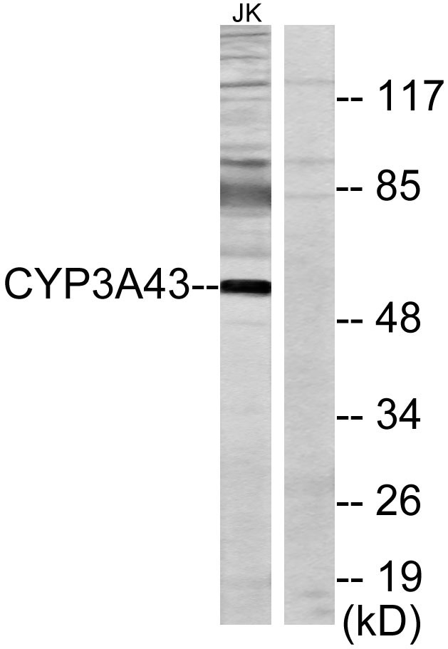 alternative products:Additional isoforms seem to exist,catalytic activity:RH + reduced flavoprotein + O(2) = ROH + oxidized flavoprotein + H(2)O.,cofactor:Heme group.,function:Exhibits low testosterone 6-beta-hydroxylase activity.,induction:By rifampicin.,online information:CYP3A43 alleles,polymorphism:At protein level, three alleles are known: CYP3A43*1, CYP3A43*2 and CYP3A43*3. The sequence shown is that of CYP3A43*1, which is the most frequent allele. The allele CYP3A43*2 is likely to be non-functional.,similarity:Belongs to the cytochrome P450 family.,tissue specificity:Highest expression level in prostate. Also expressed in liver, kidney, pancreas, fetal liver and fetal skeletal muscle.,