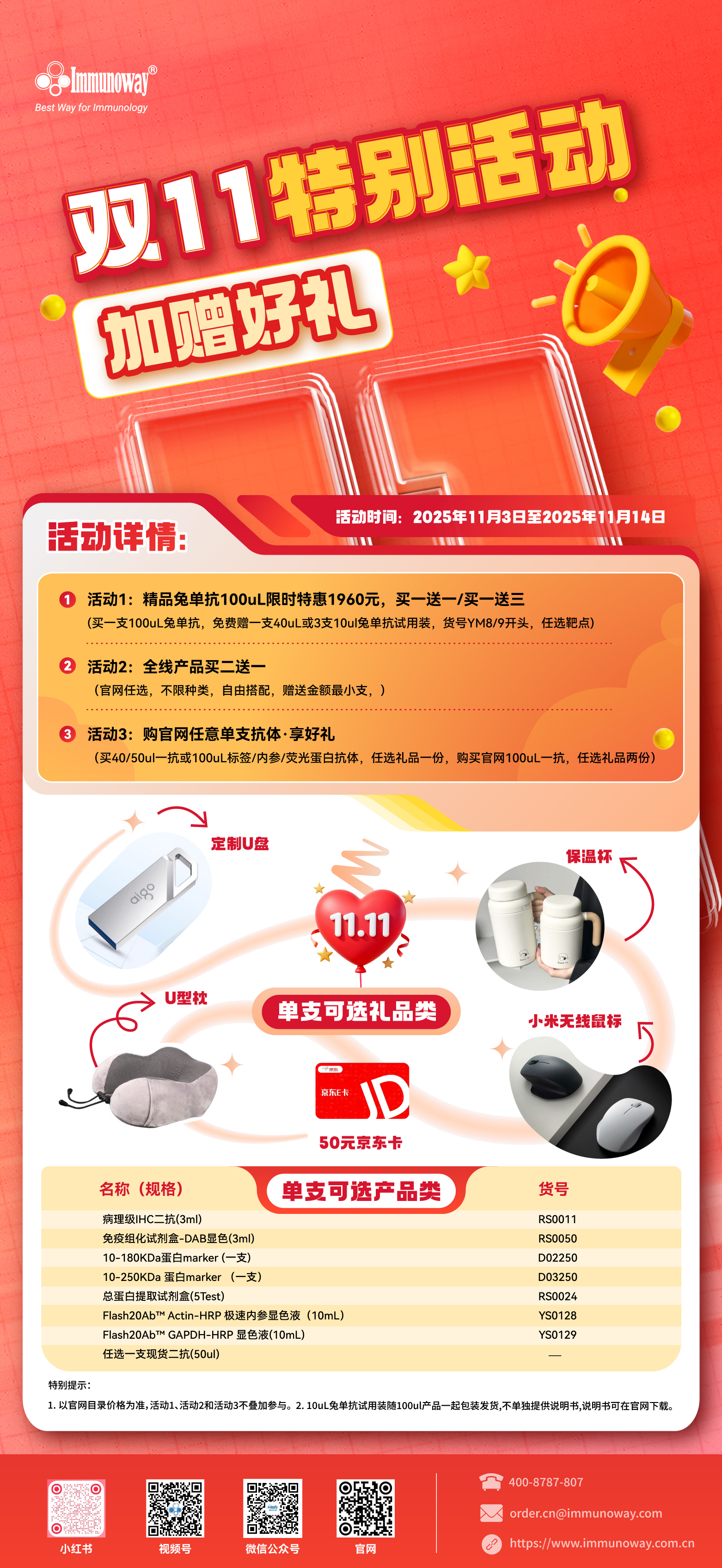 全线产品买二送一,兔单抗100uL限时特惠1960元+买一送一